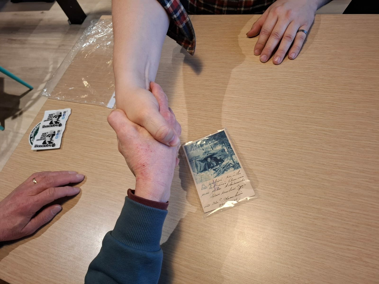 Kaikkia pöydässä olleita kiinnosti miten kortti oli päätynyt Karjalan kannakselta Ukrainaan, mutta se ei välttämättä tule koskaan selviämään. Paras veikkaus on, että vihollisen käsiin jäänyt postilähetys taltioitiin KGB:n arkistoon, ja sieltä se on myöhemmin tavalla tai toisella päätynyt takaisin ihmisten ilmoille ja sotilaan kautta ukrainalaiselle yhteyshenkilöllemme.