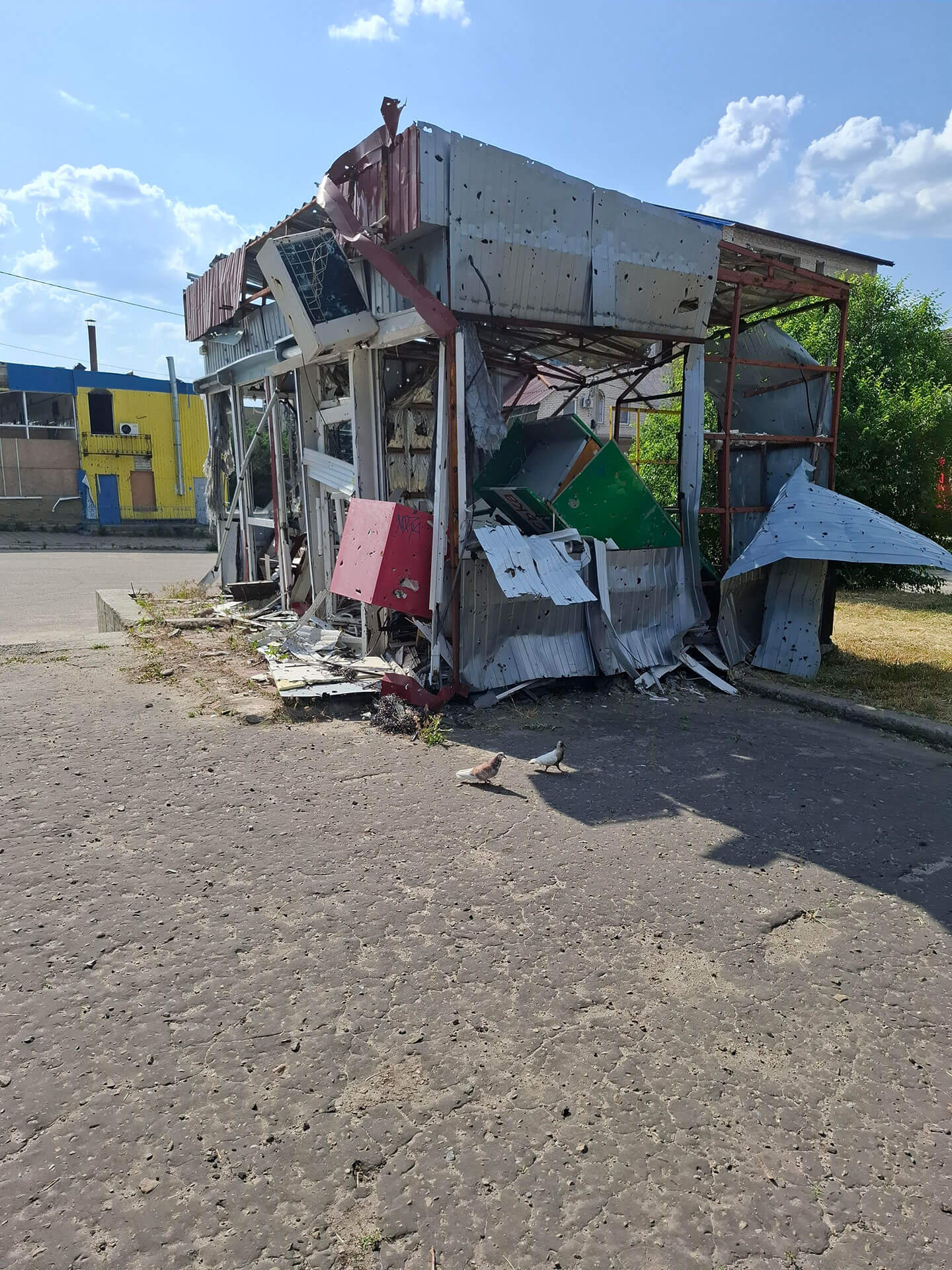 Oikealla näkyi kolme maasta nousevaa savuvanaa siltä kohdalta, jossa kopterit olivat olleet. Noin 10 km päässä oli pieni paikallinen kioski/kauppa. Hain sieltä aamukahvin ja jonkun kaalipiirakan. Yritin jututtaa paikallisia muutaman sanan venäjäntaidoillani ja minulle selvisi, että kopterit olivat ukrainalaisia ja ilmeisesti pudottivat kolme lennokkia tai dronea. Myöhemmin sain kuulla Ukrainan ilmapuolustuksen toimivan alueella niin hyvin, että venäläiset eivät lennä koptereitaan etulinjan yli.